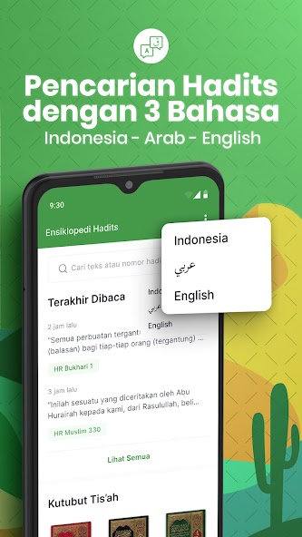 Компиляция хадисов 9 книгами (Шахих Бухари, Шахих Муслим, Сунан Абу Дауд и т. Д.) С переводом на Индонезии и степень подлинности хадисов облегчит нам изучение хадисов как второй источник исламского закона после Аль -Корана.